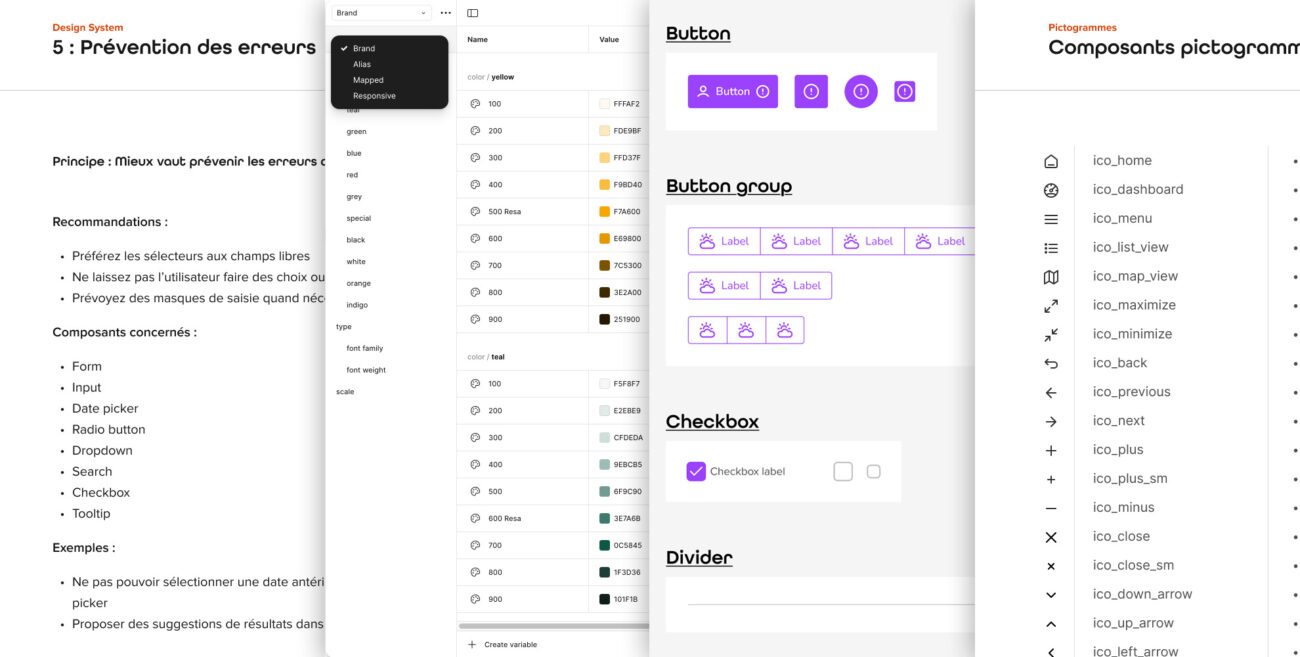 - Documentation : l’ensemble des règles et des recommandations expliquant comment utiliser chaque composant dans différents scénarios.